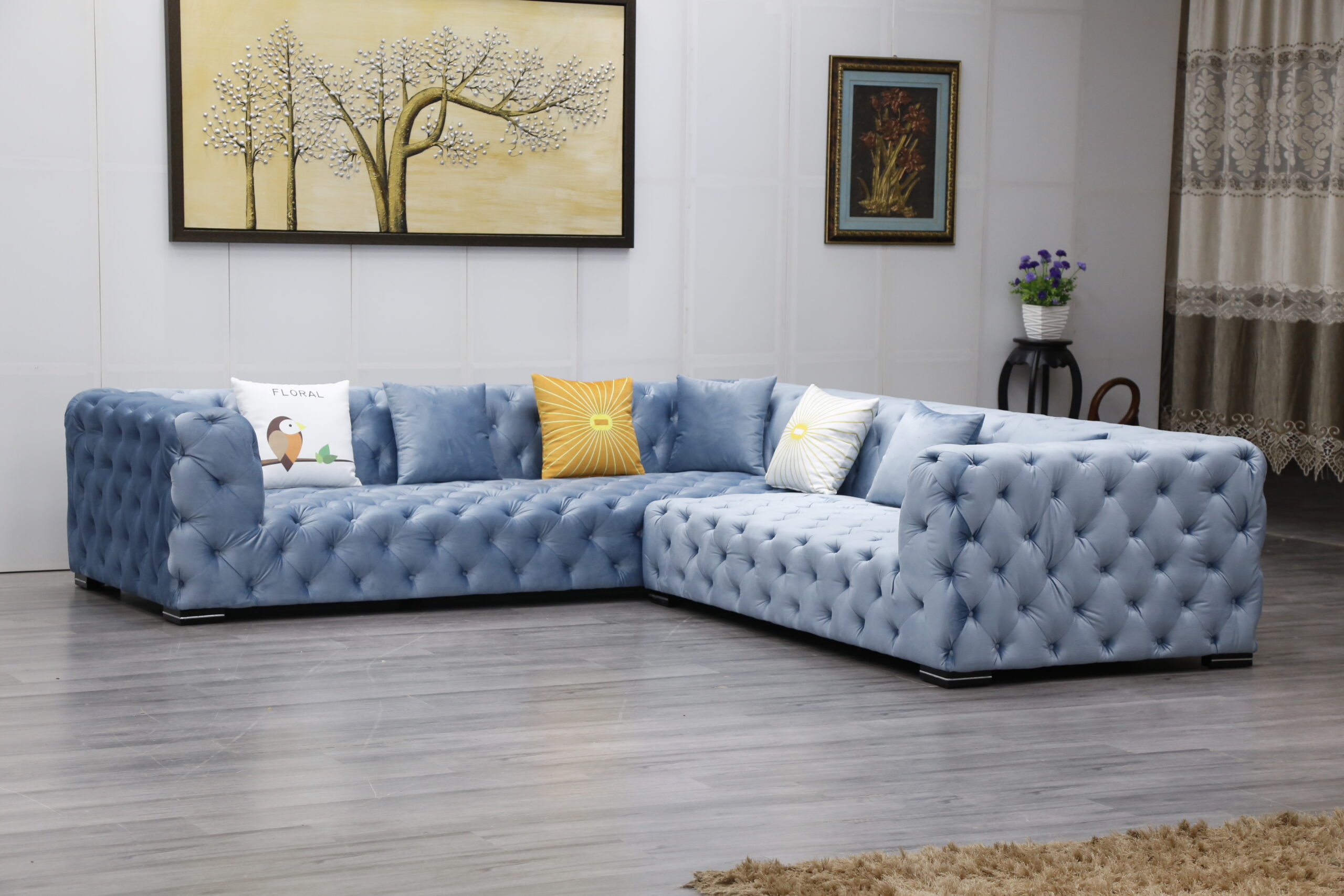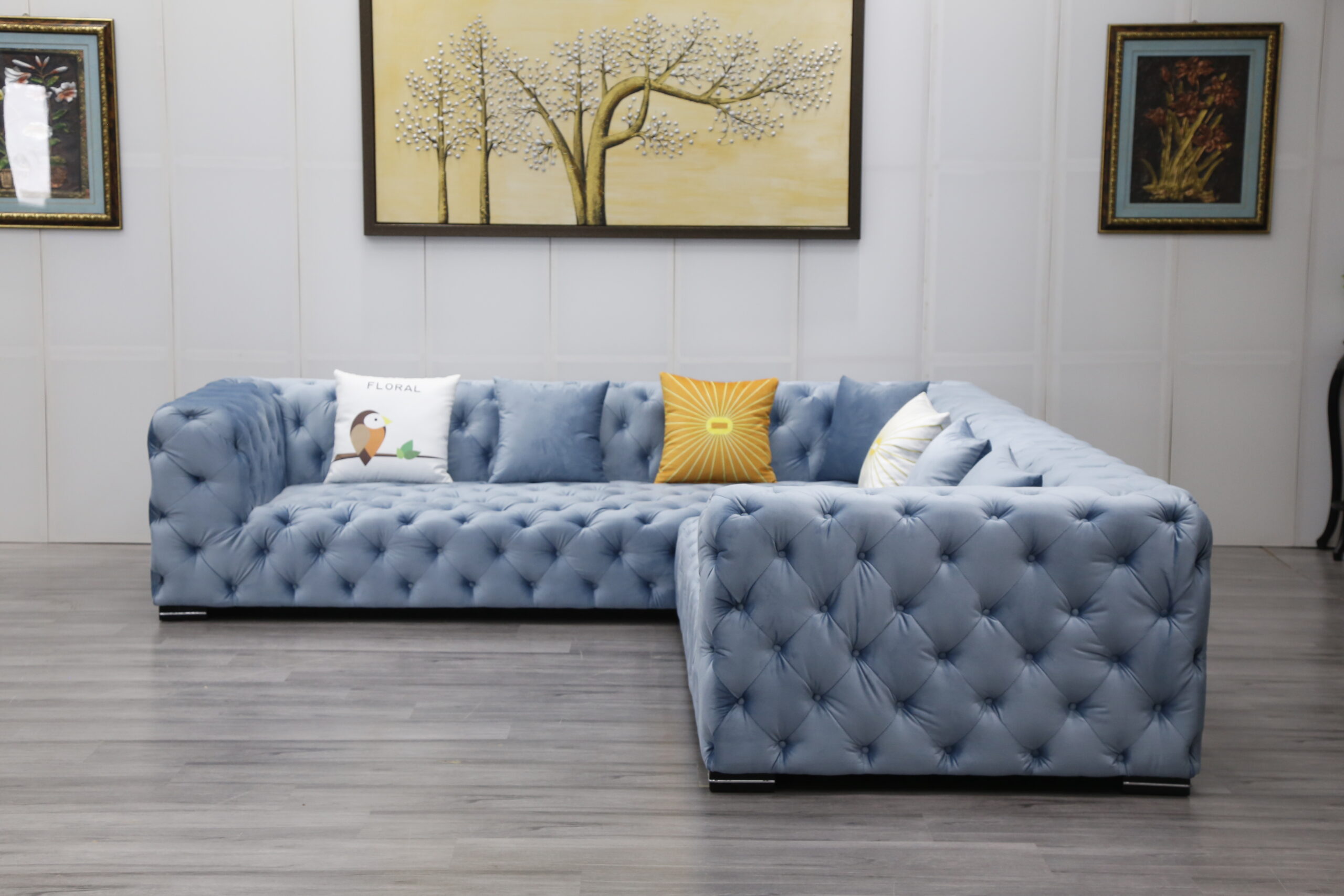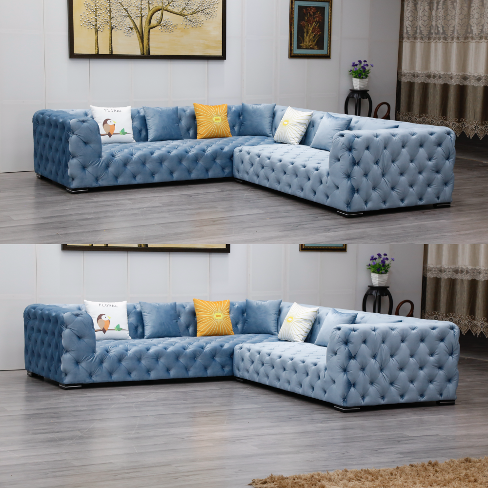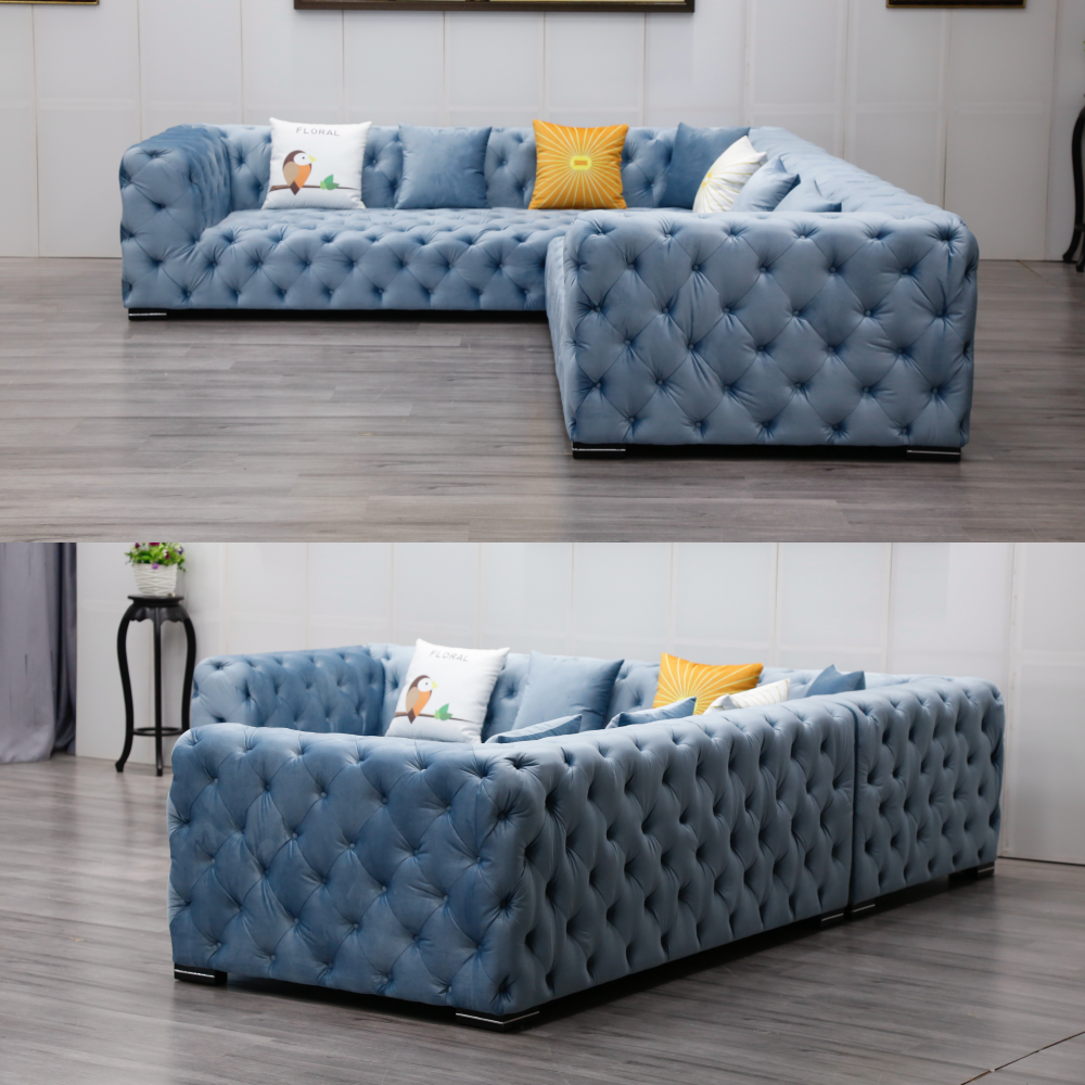 Luxury Italian Chesterfield Sectional Tufted Velvet Sofa Set