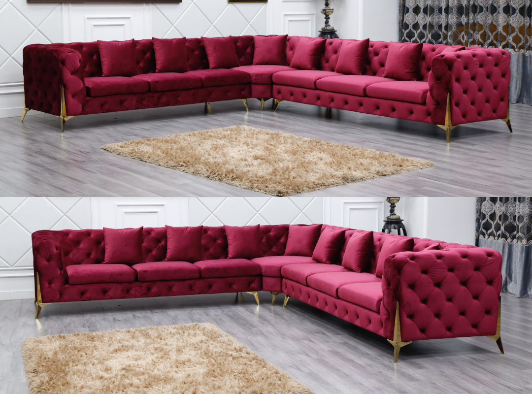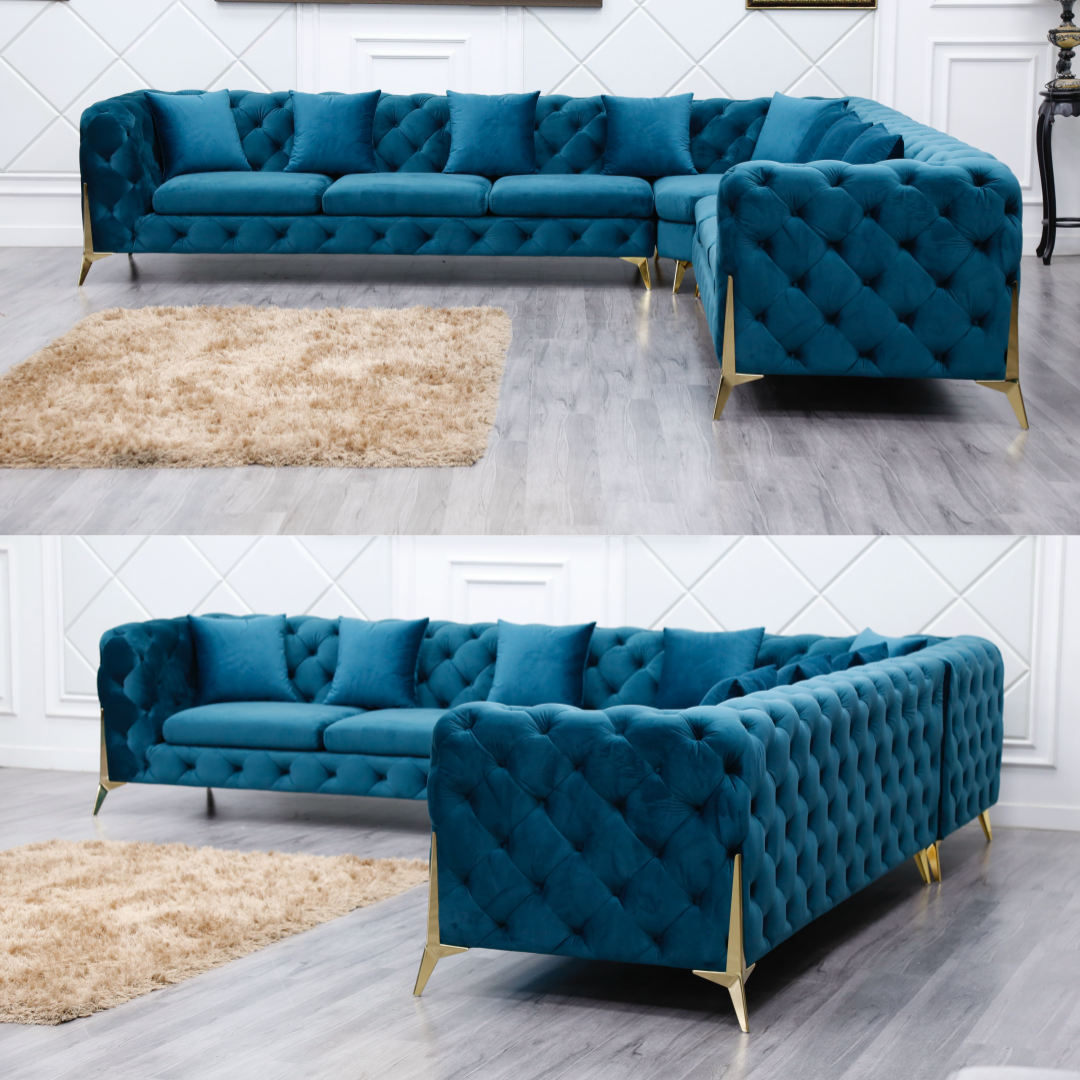 Luxury Italian Chesterfield Velvet Tufted Sectional Sofa