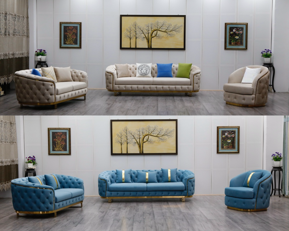 Elegant Design Stainless Steel Base Living Room Sofa Set