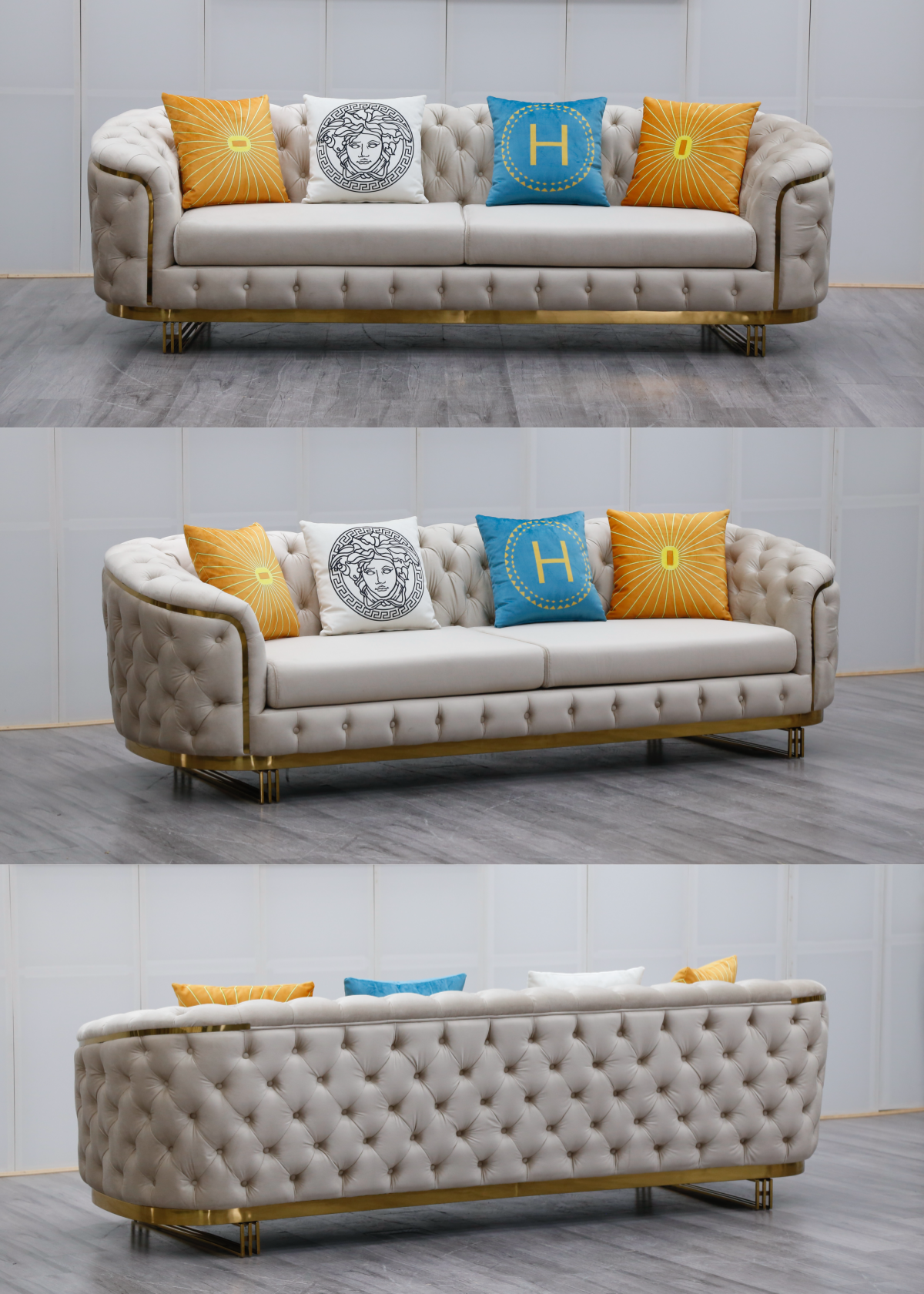 | Product Name | Luxury Metal Sofa Set Designs Elegant Design Stainless Steel Base Decor Modern Couch Living Room Matel Sofa Set |