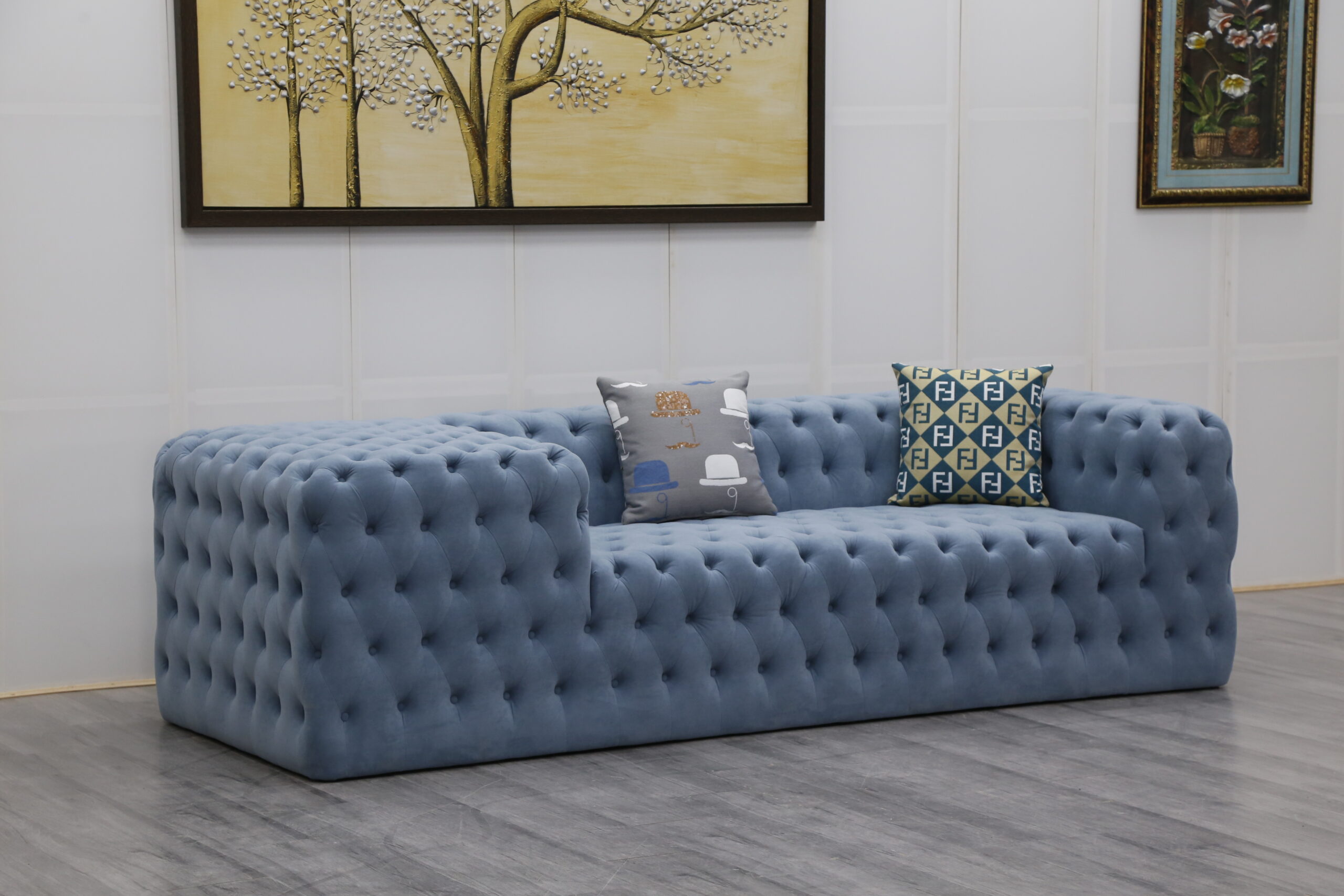 Arab Sleek Velvet Tufted Section Chesterfield Sofa Set