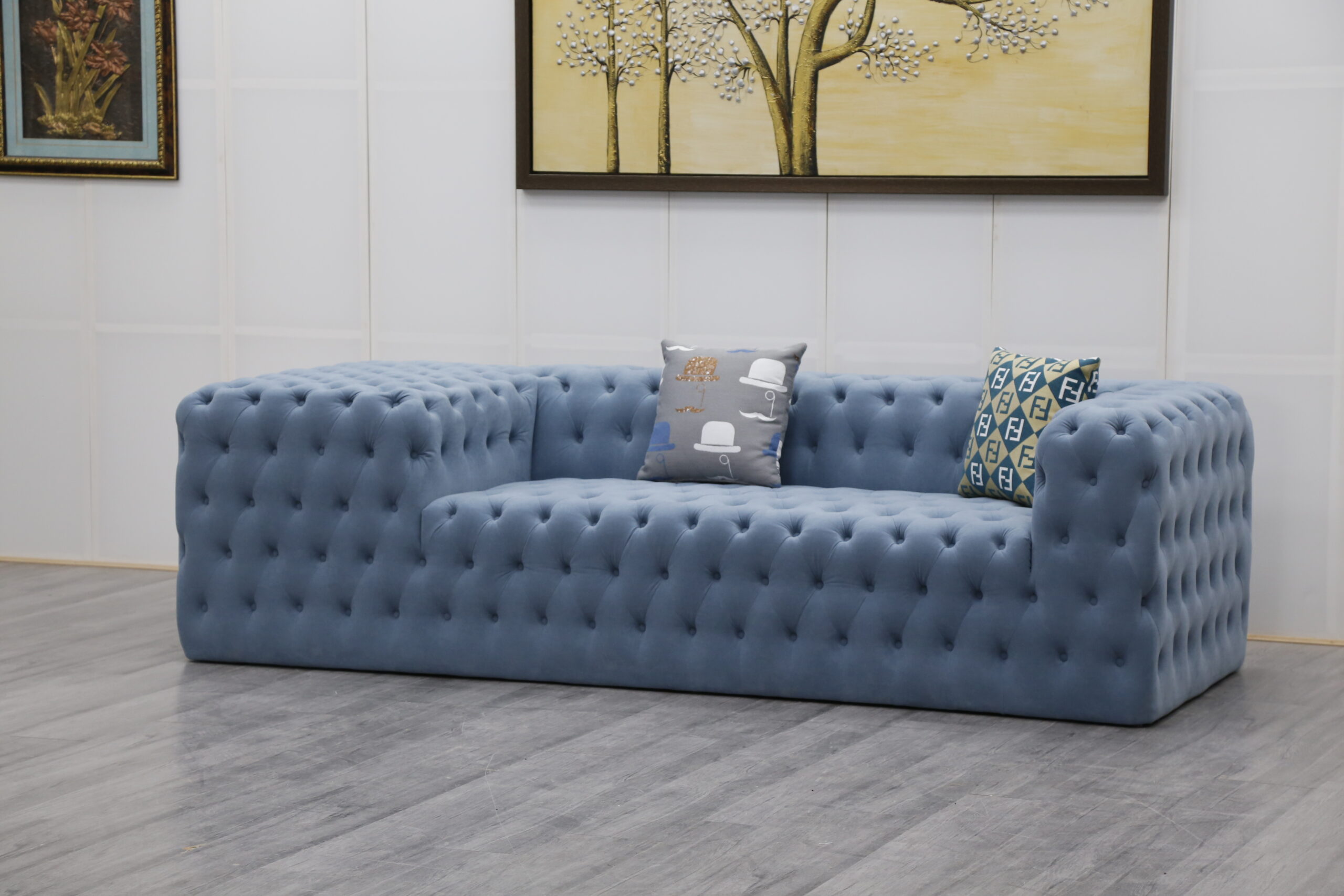 2024 New Design Living Room Furniture Arab Sleek Velvet Tufted Section Chesterfield Sofa Set