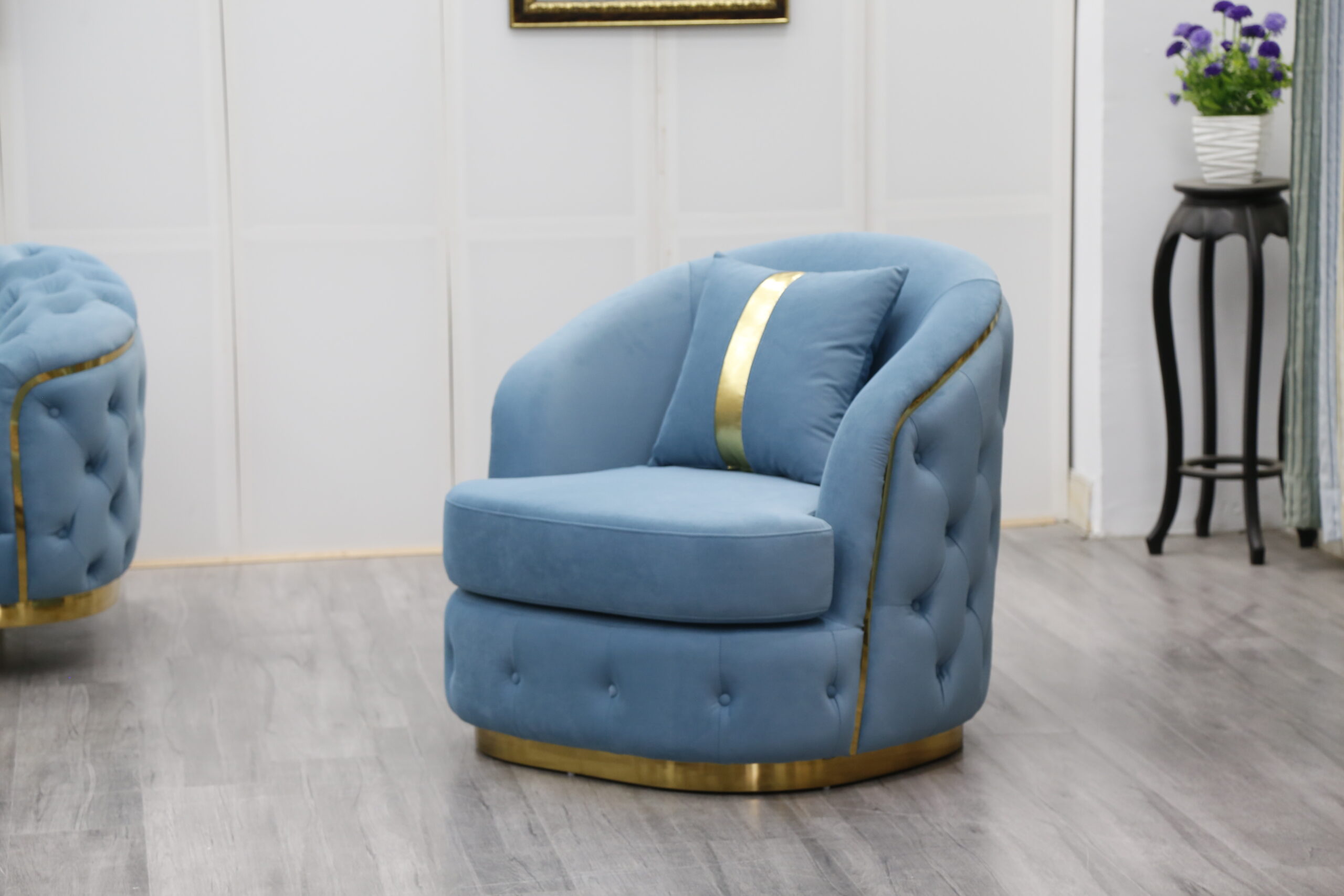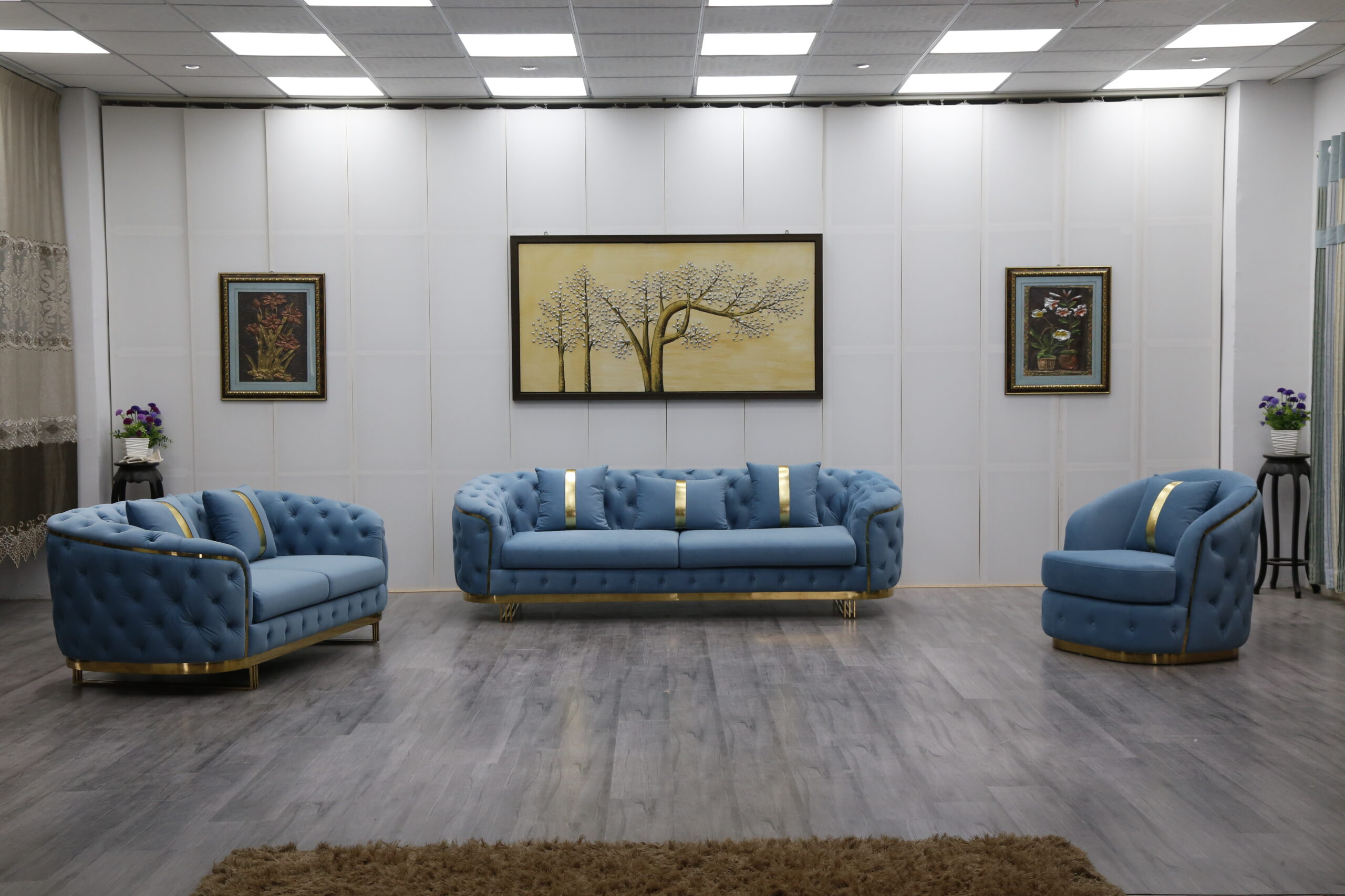 European Style Beige Velvet Chesterfield Sectional Sofa Set