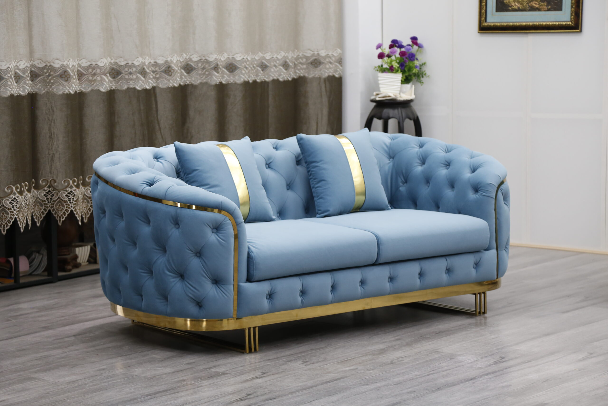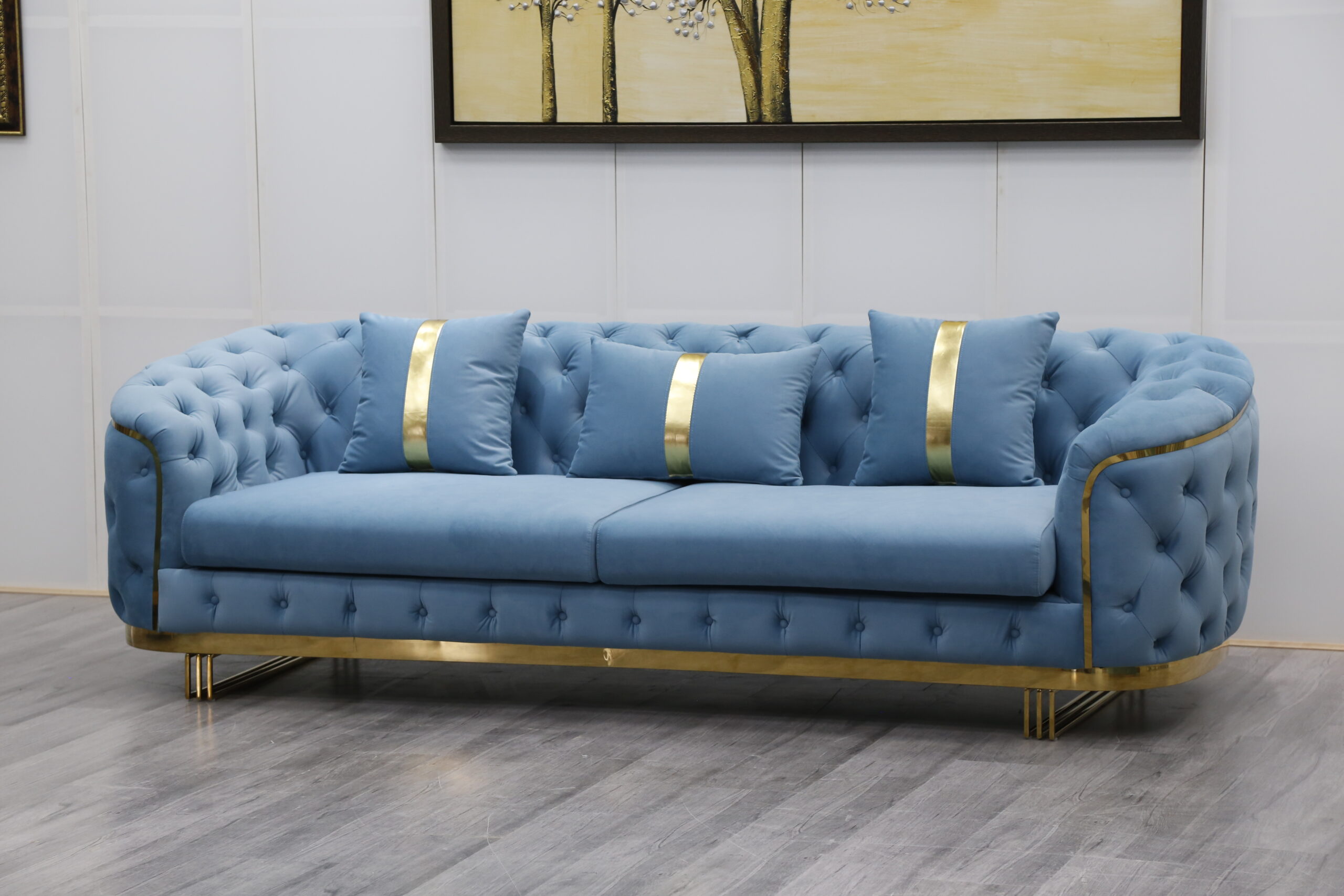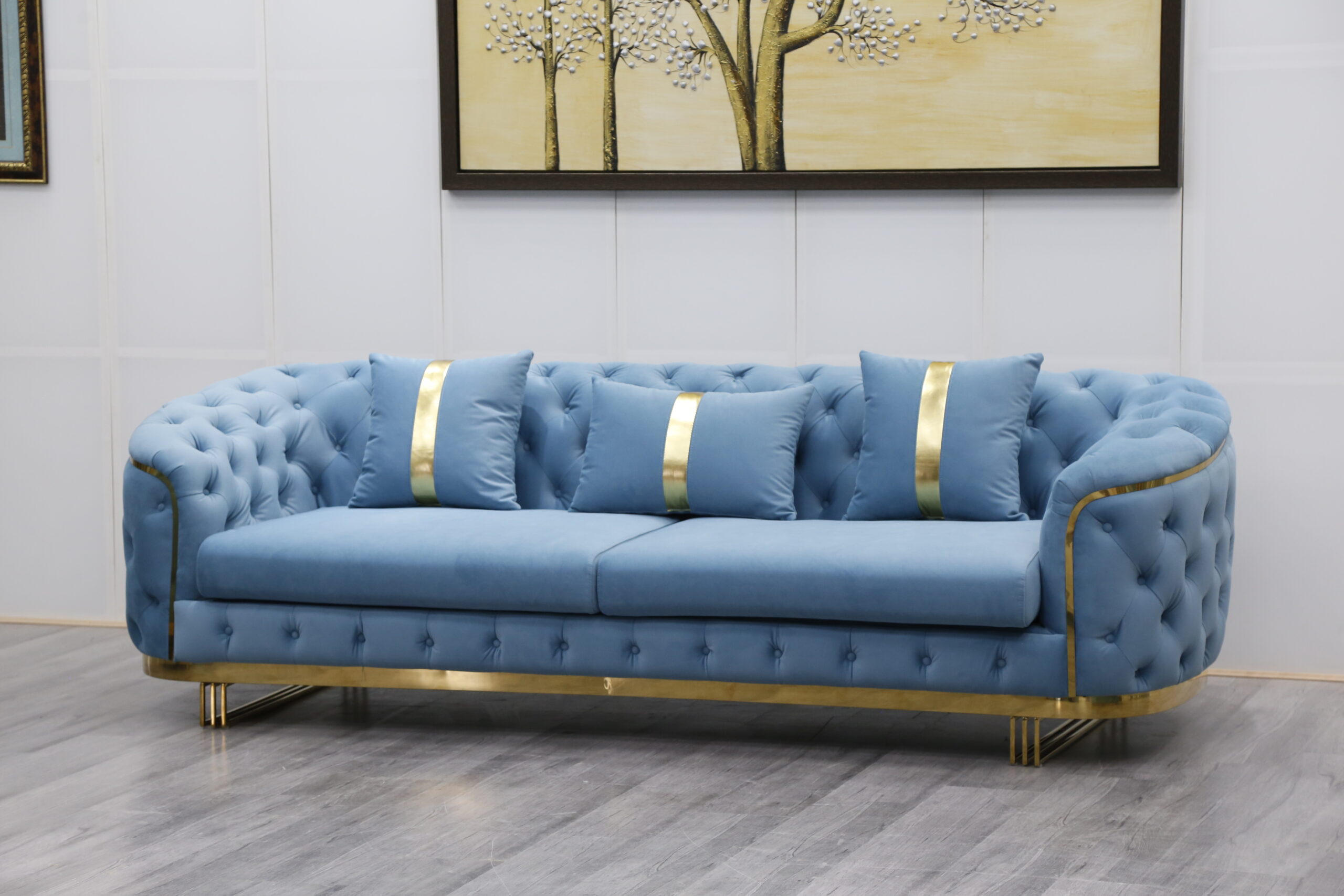 European Sectional Sofa Set Design Stainless Steel Home Decor Sleeper Chaise Lounge Italian Furniture Velvet Chesterfield Sofa Beige