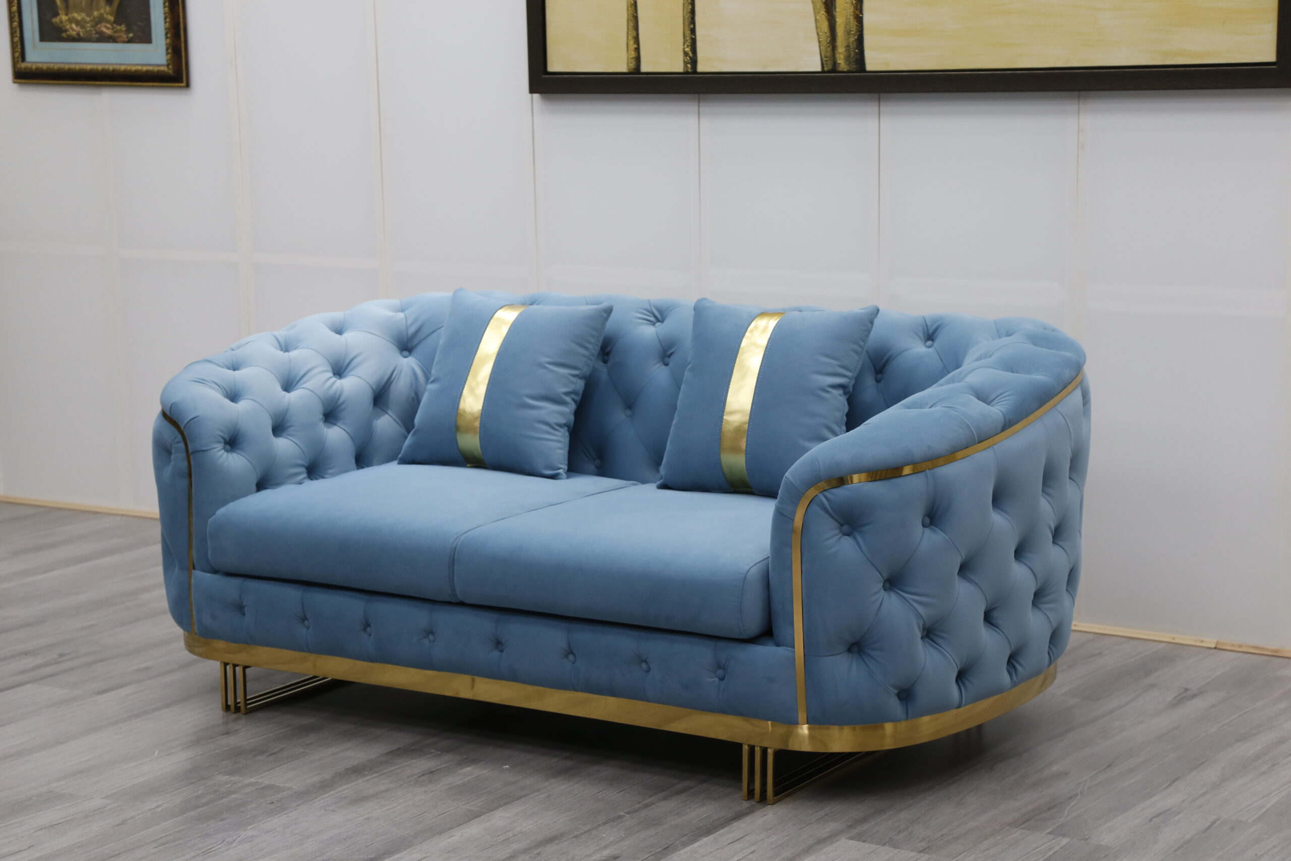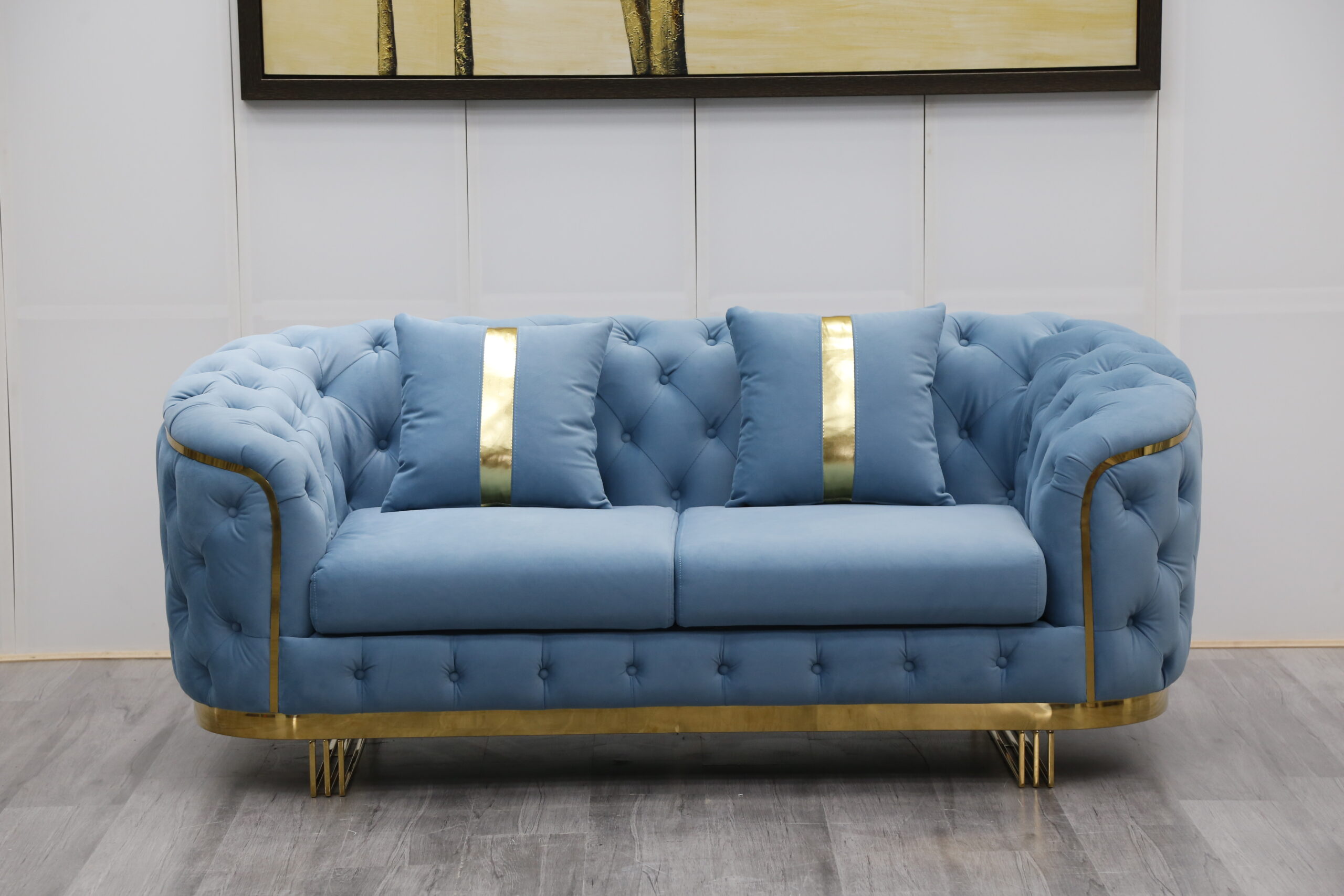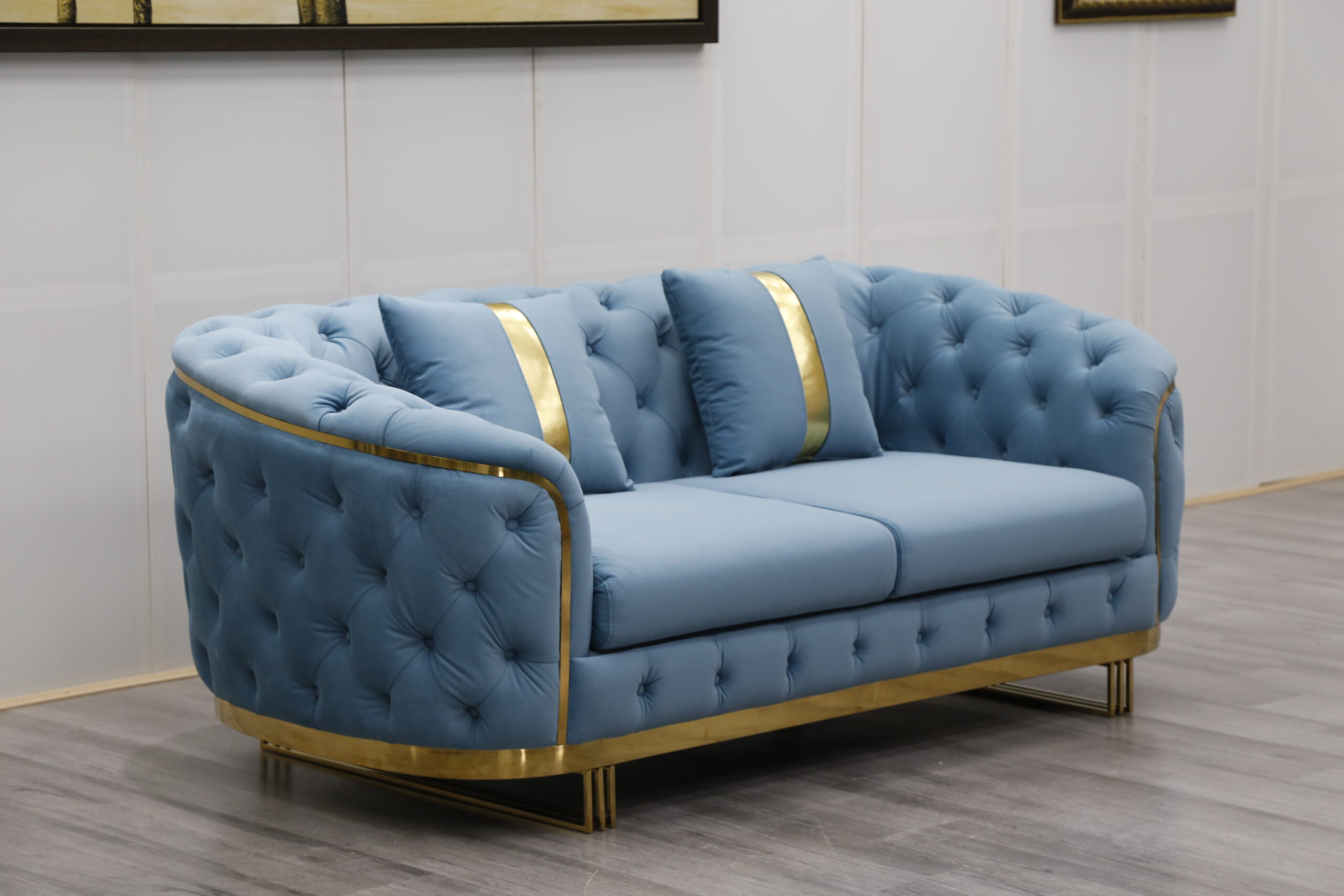 European Sectional Sofa Set Design Stainless Steel Home Decor Sleeper Chaise Lounge Italian Furniture Velvet Chesterfield Sofa Beige